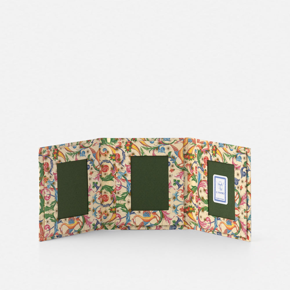 Cornice con 3 luci di 4.5x6.5 cm, rivestita in carta litografata.