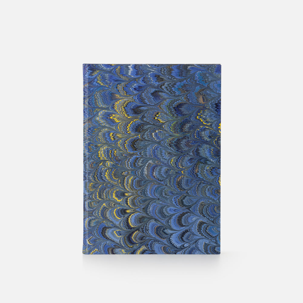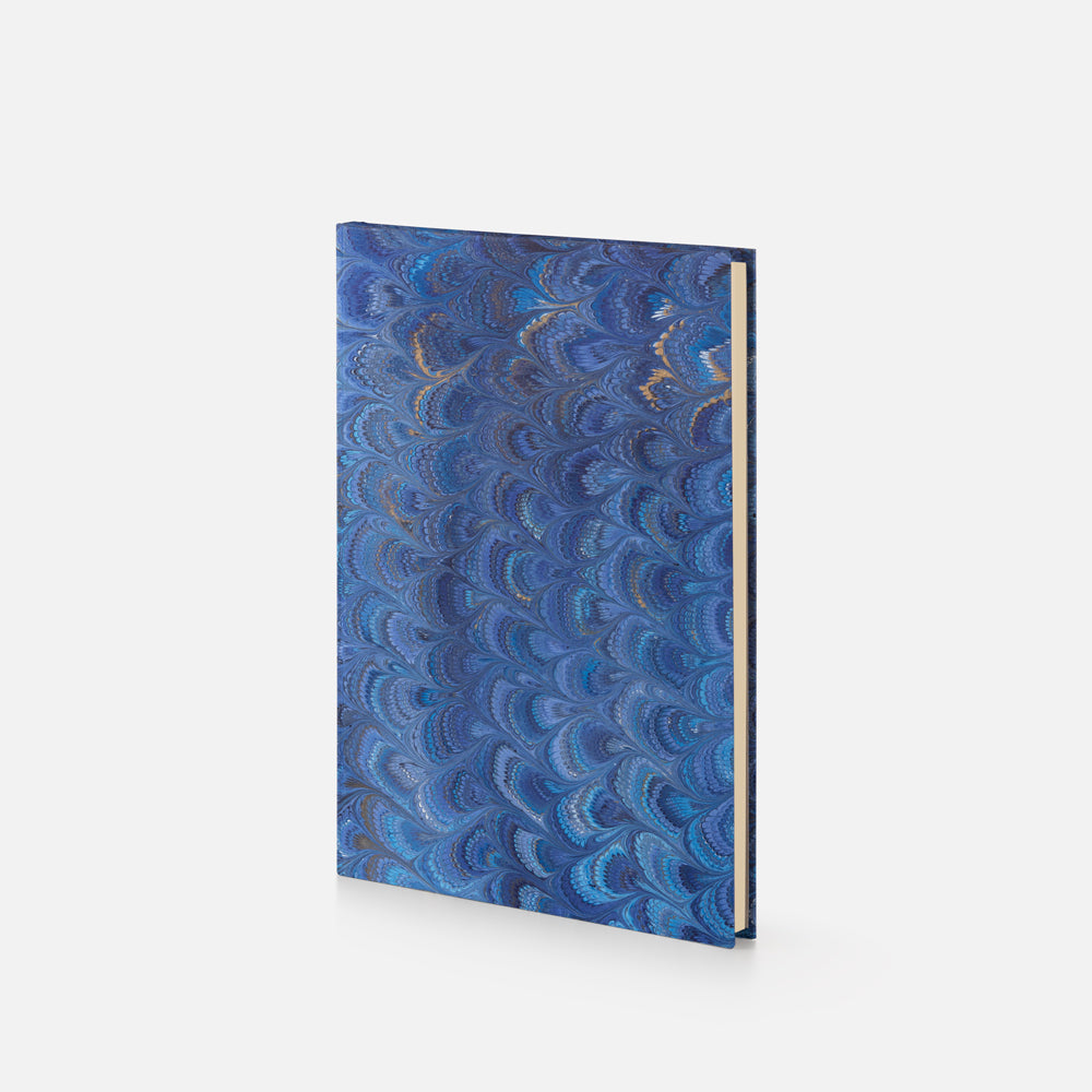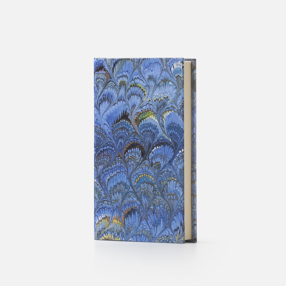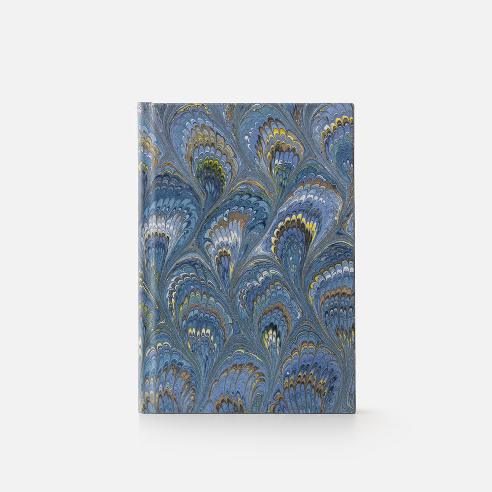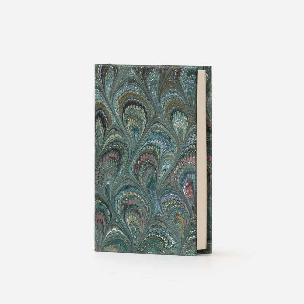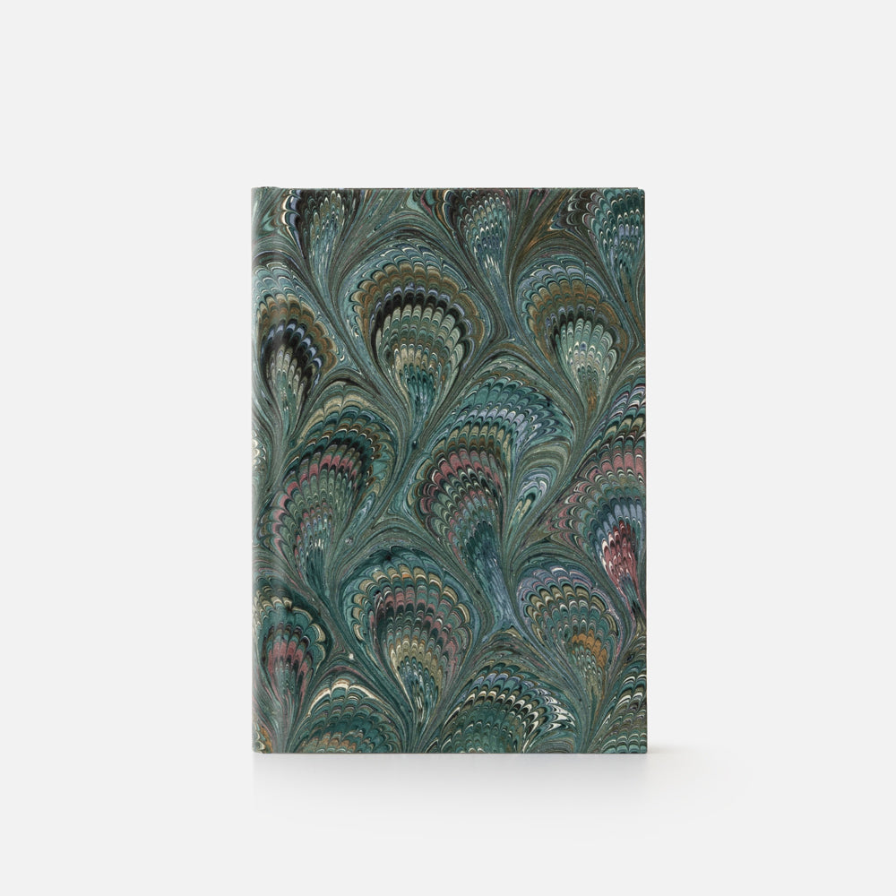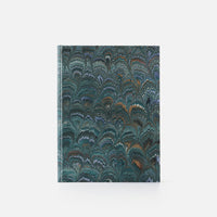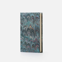 Taccuino con pagine bianche e copertina rigida in carta decorata a mano, disegno pavoni