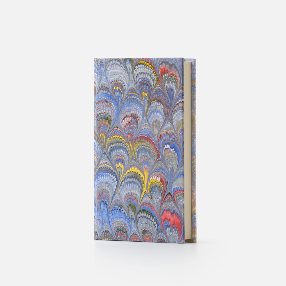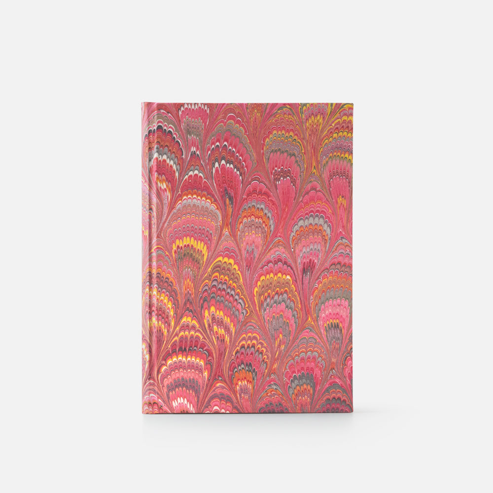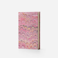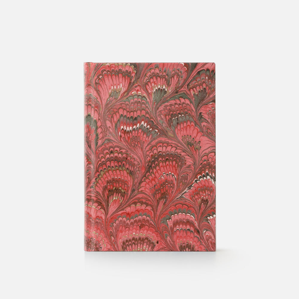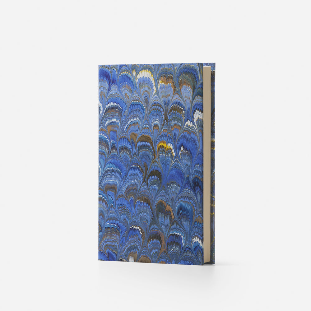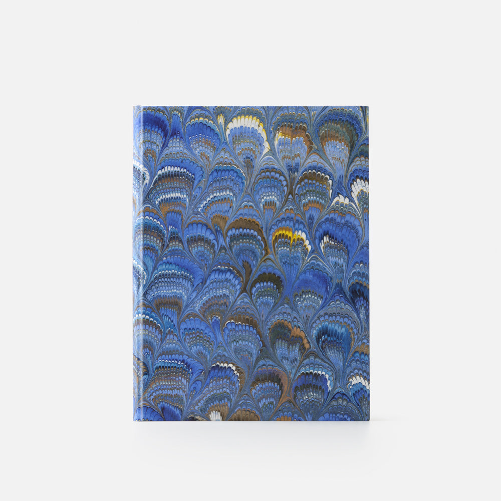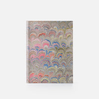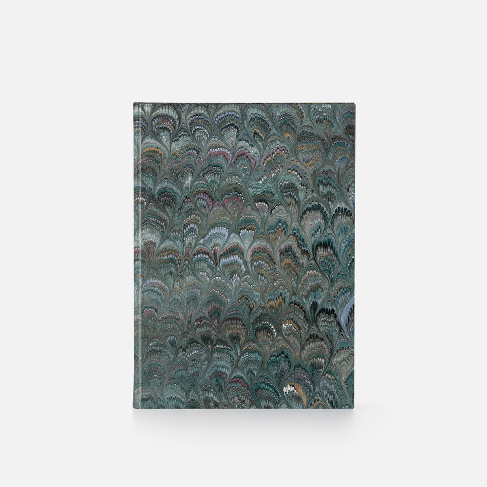 Taccuino con pagine bianche e copertina rigida in carta decorata a mano, disegno pavoni