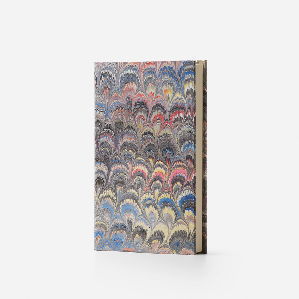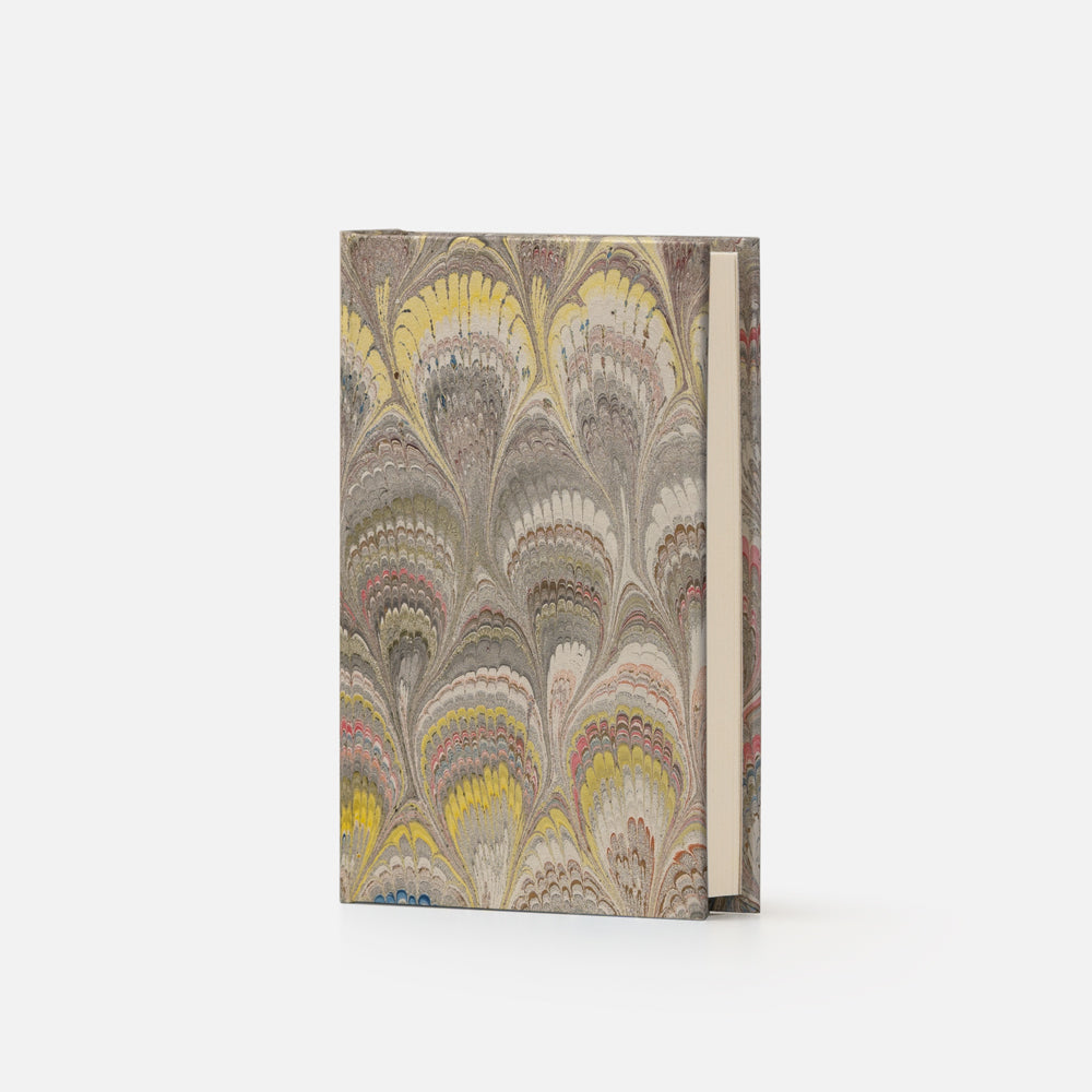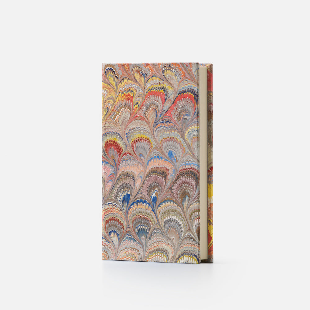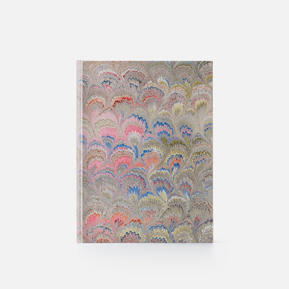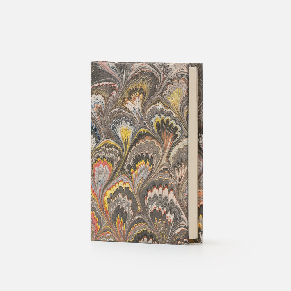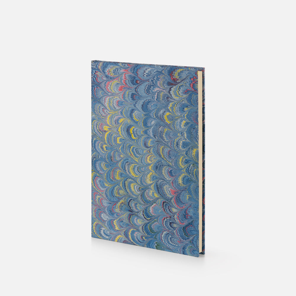 Taccuino con pagine bianche e copertina rigida in carta decorata a mano, disegno pavoni